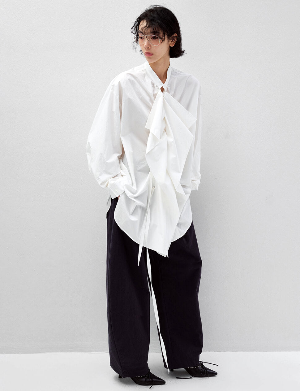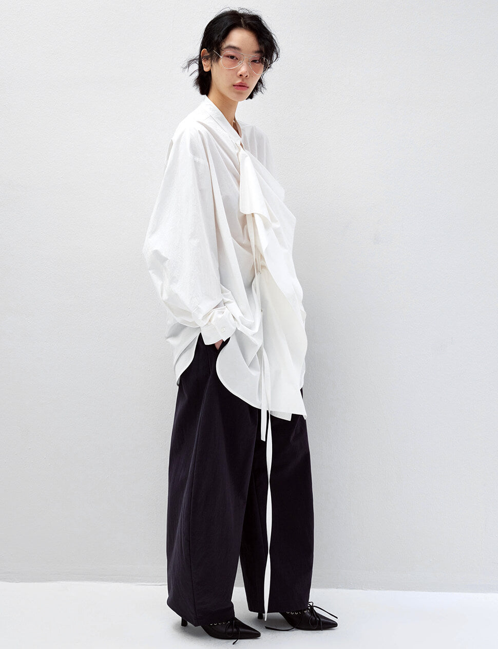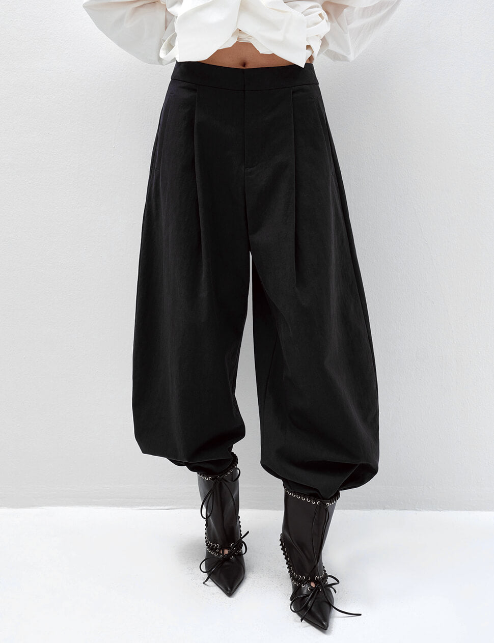 The dark navy pants that go with everything but look like nothing else. Our High Waist Barrel Leg Pants in dark navy are cut from a lightweight cotton lyocell blend with deep front pleats and a rounded barrel leg that tapers at the ankle. The kind of piece that makes your whole wardrobe feel more intentional. Also available in white and stone.