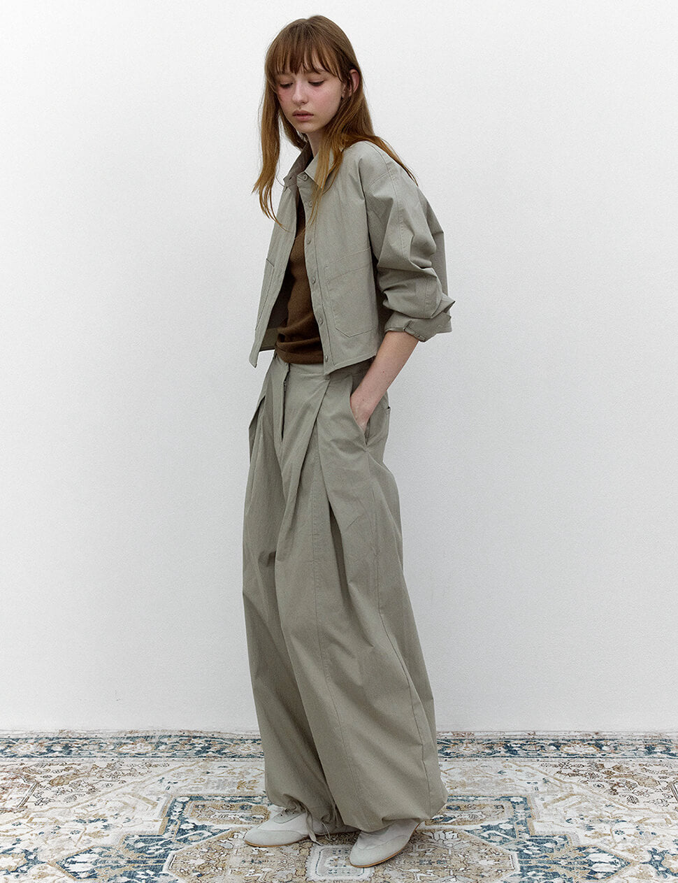 Grey Pleated Parachute Pants
