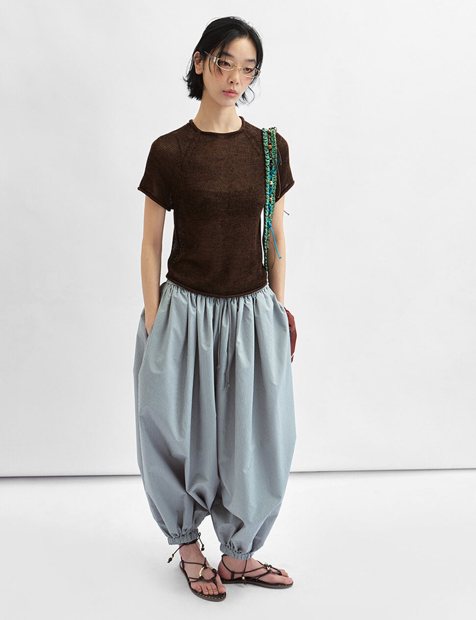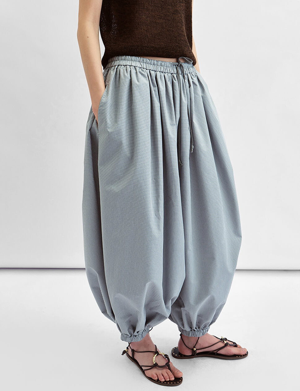 Light Grey Micro-Check Balloon Pants-PREORDER