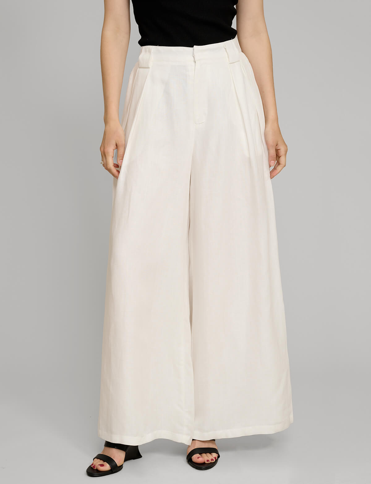 White Linen Wide Leg Pants