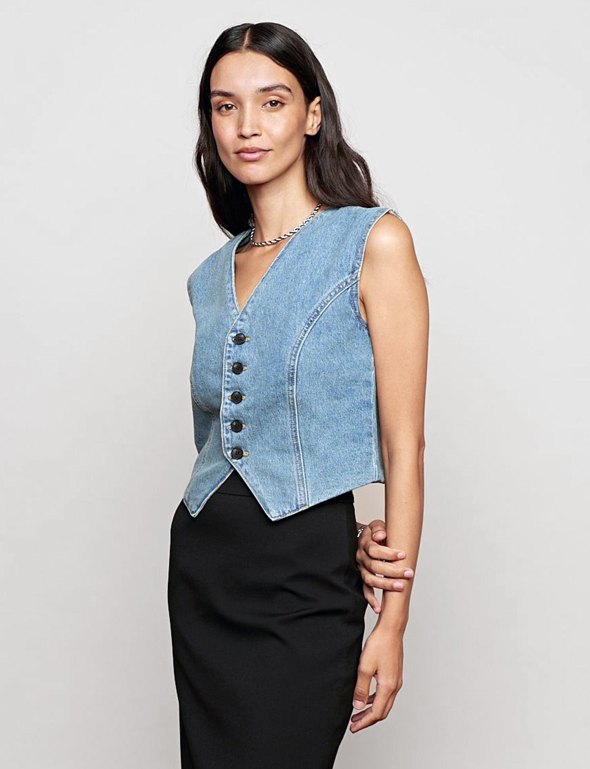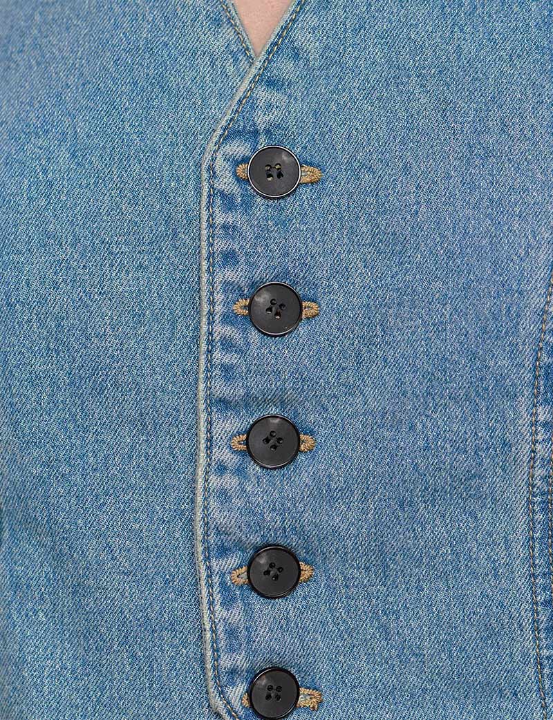 Chic and versatile denim fitted button vest .