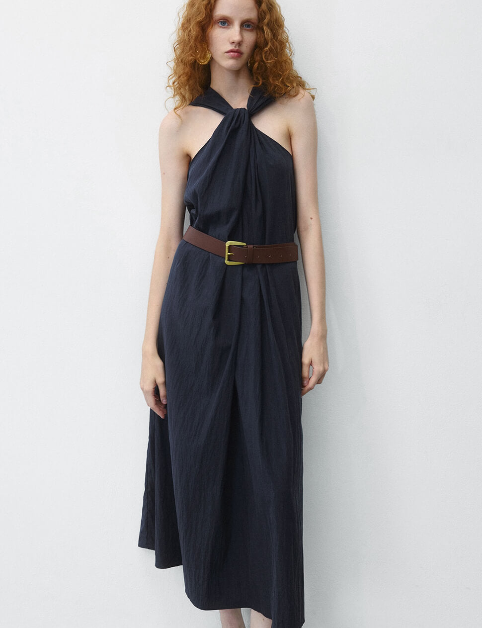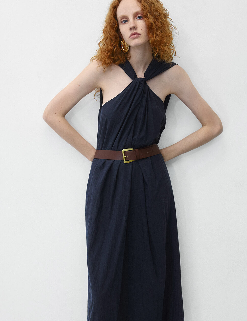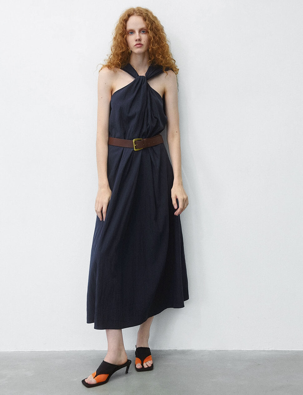 Navy Knot Halter Dress