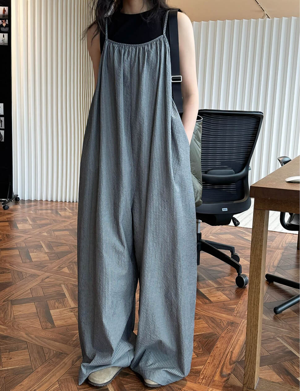 Wide Leg Baggy Stripe Jumpsuit