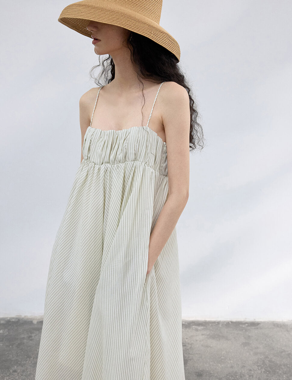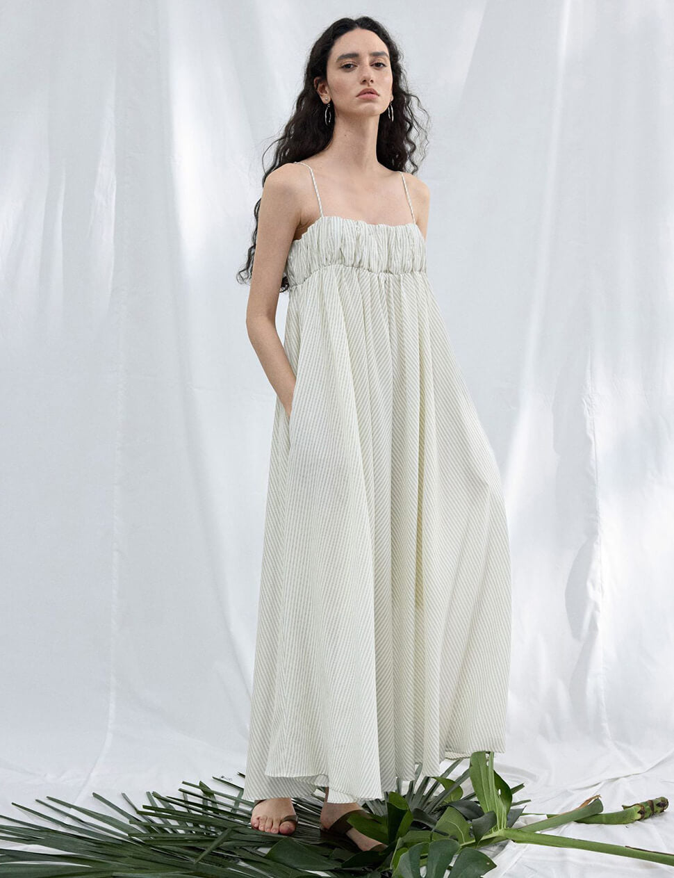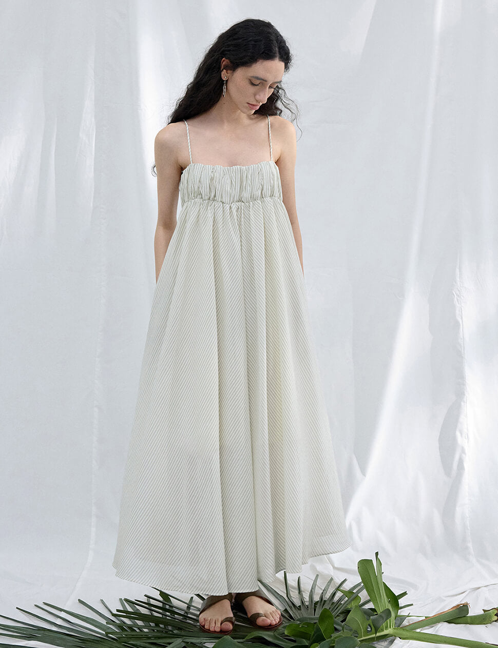 Elastic-bust striped empire waist dress.