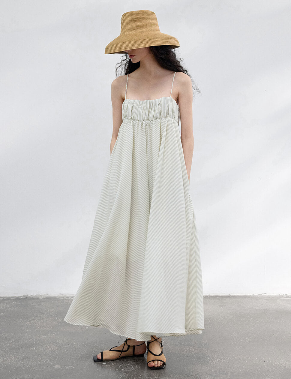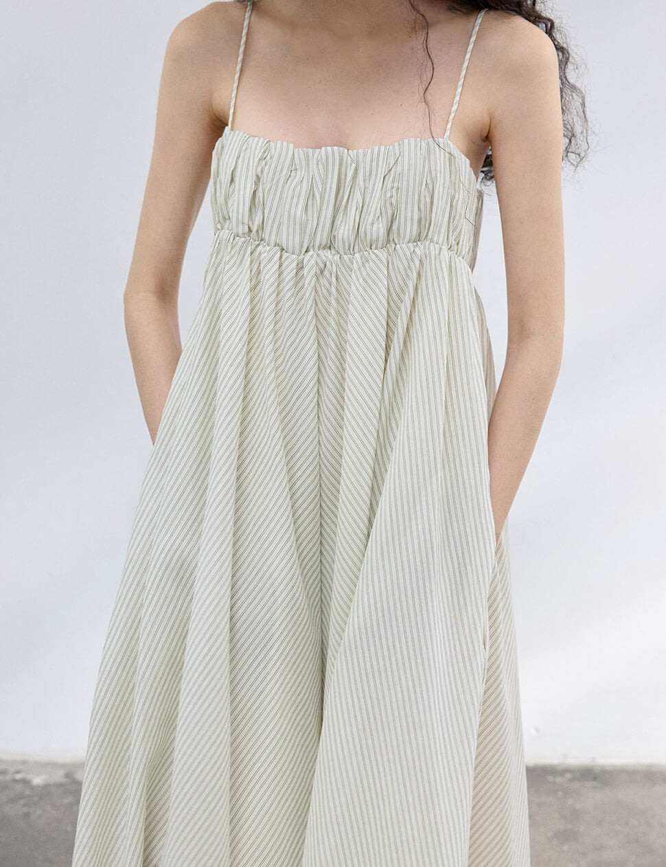 Cream Striped Empire Dress