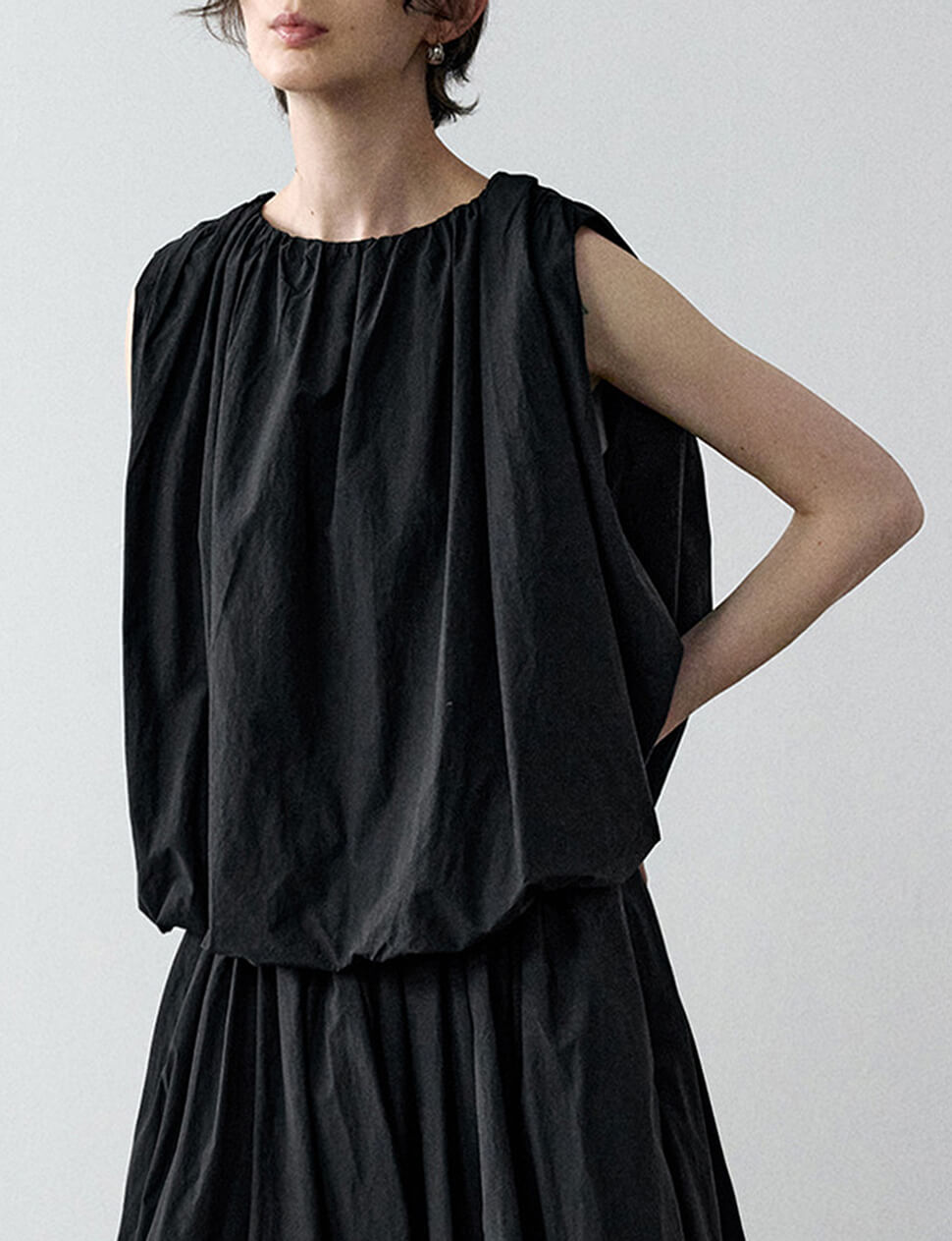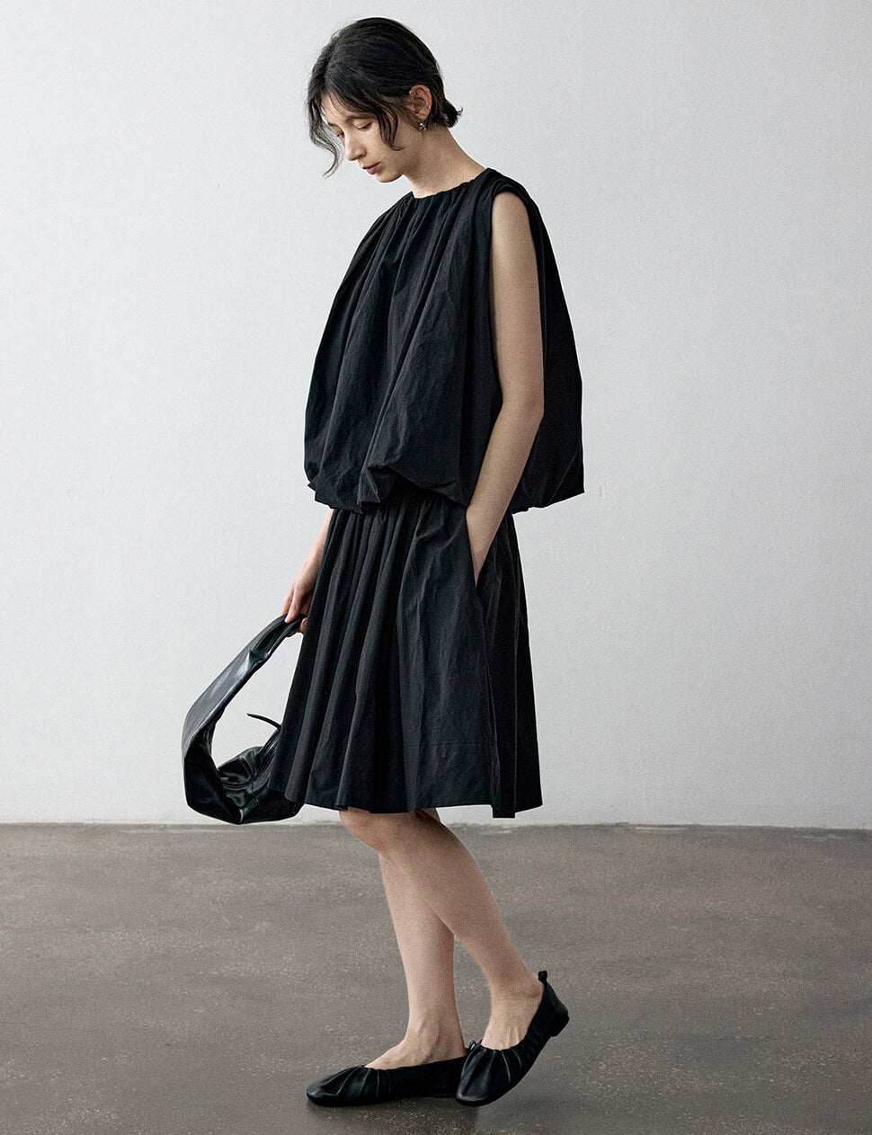 Black Puff Parachute Top