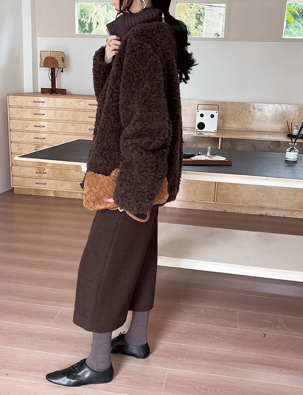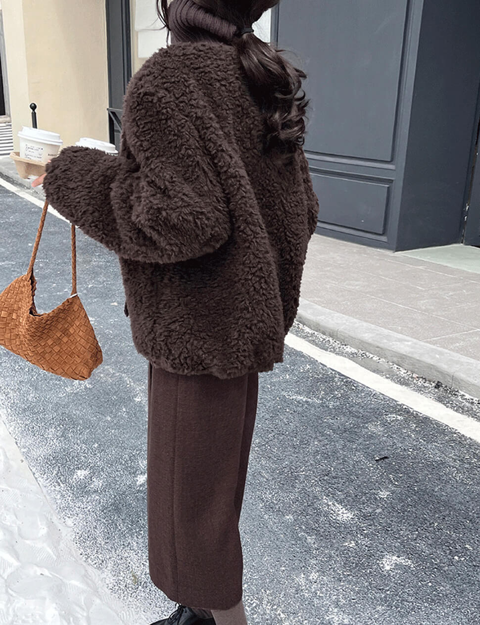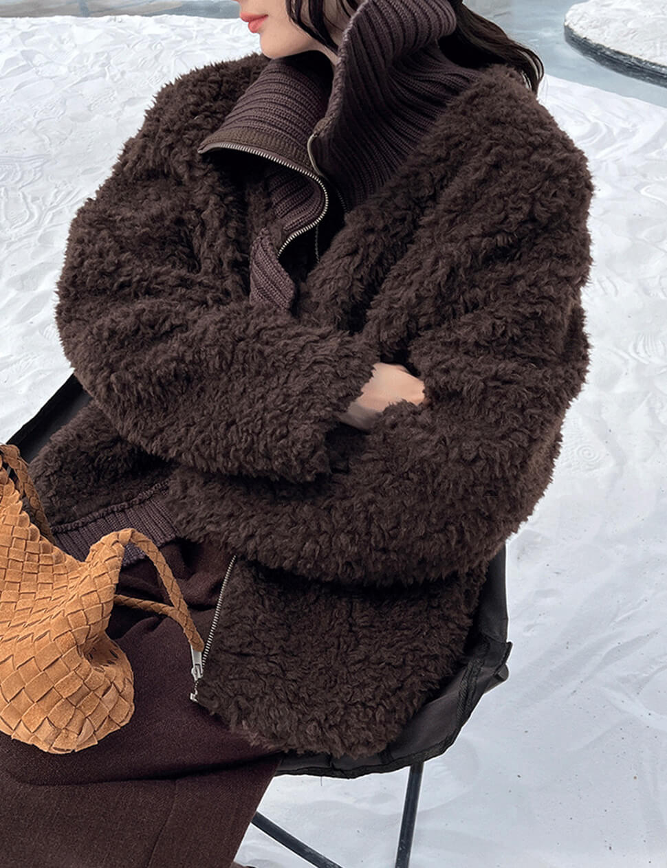 Chocolate brown faux fur zip knit jacket
