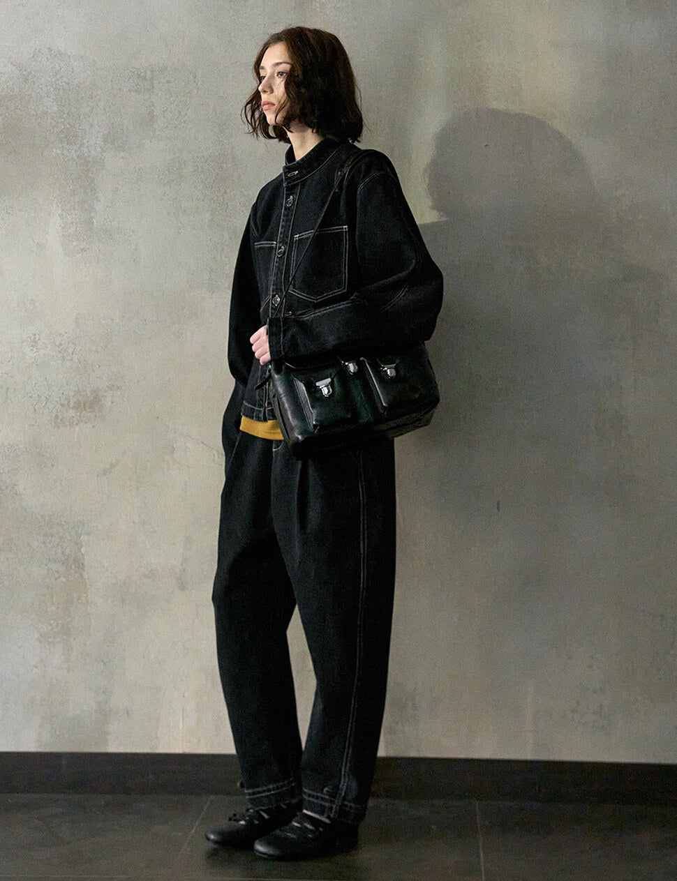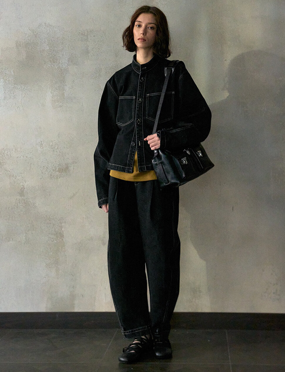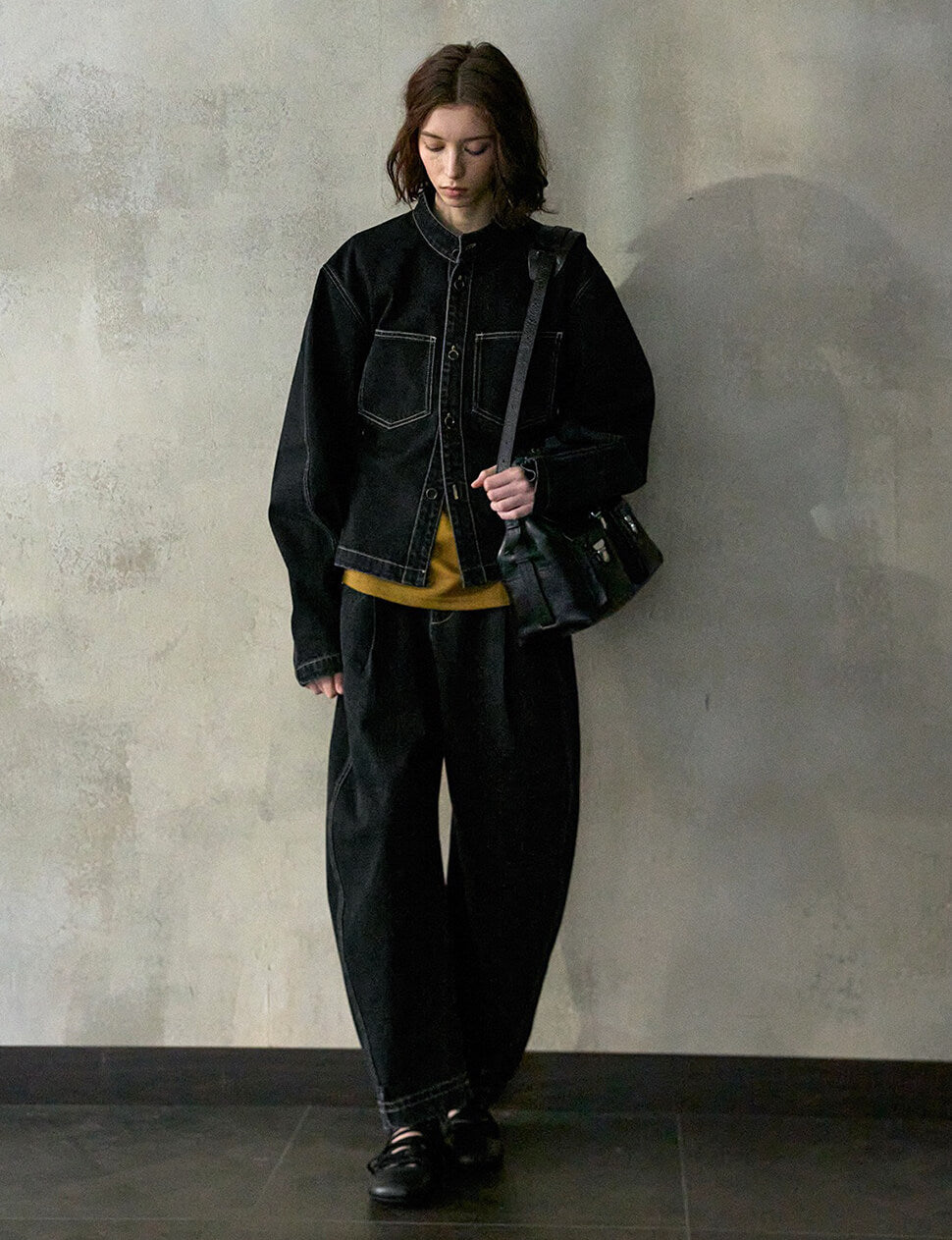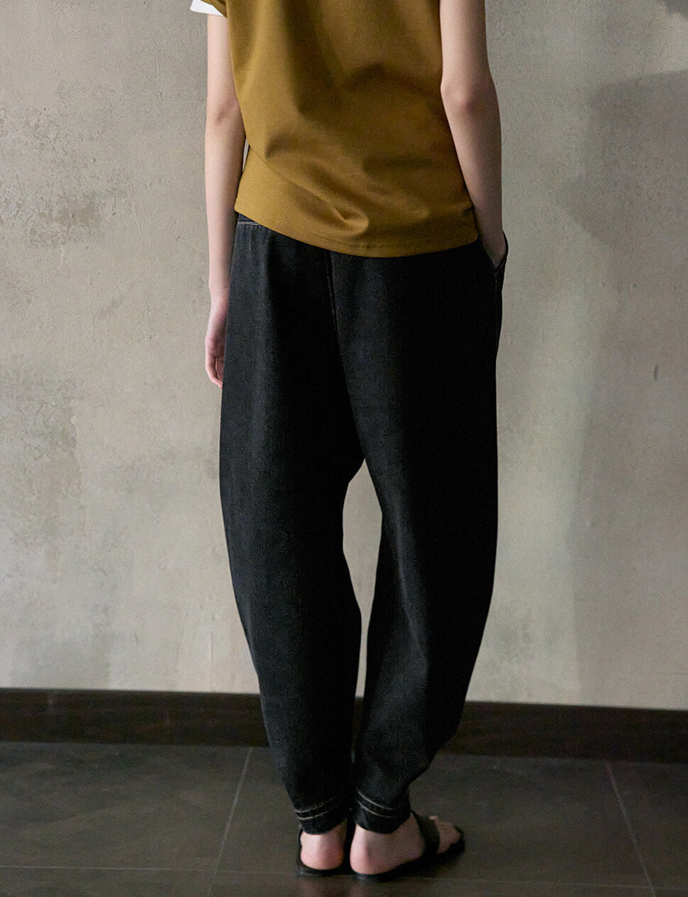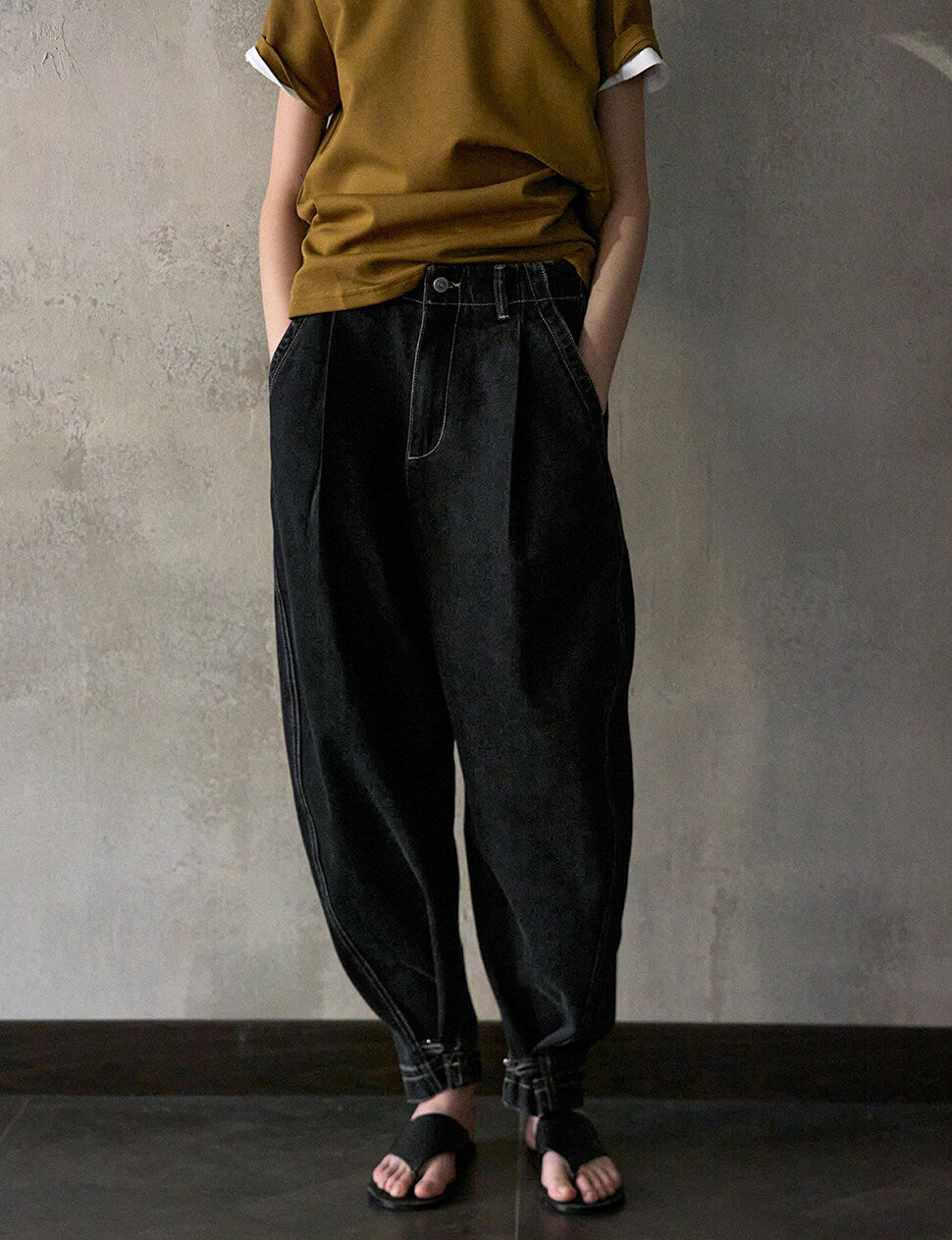 Black Barrel-leg cuffed Jeans