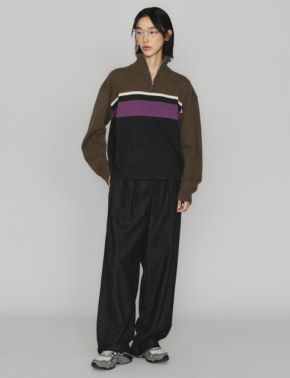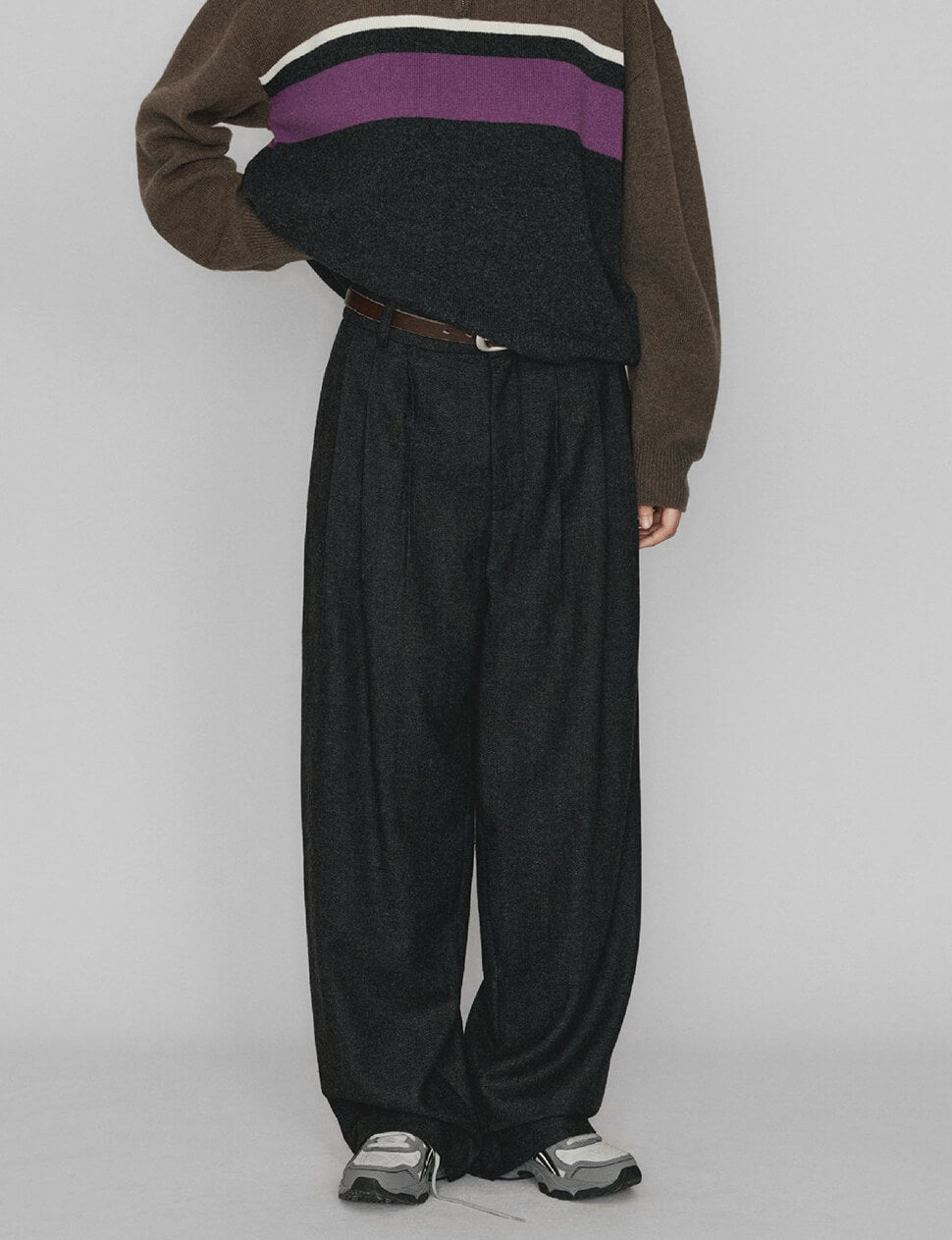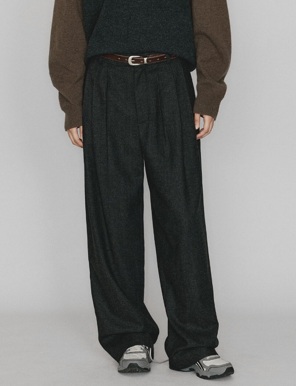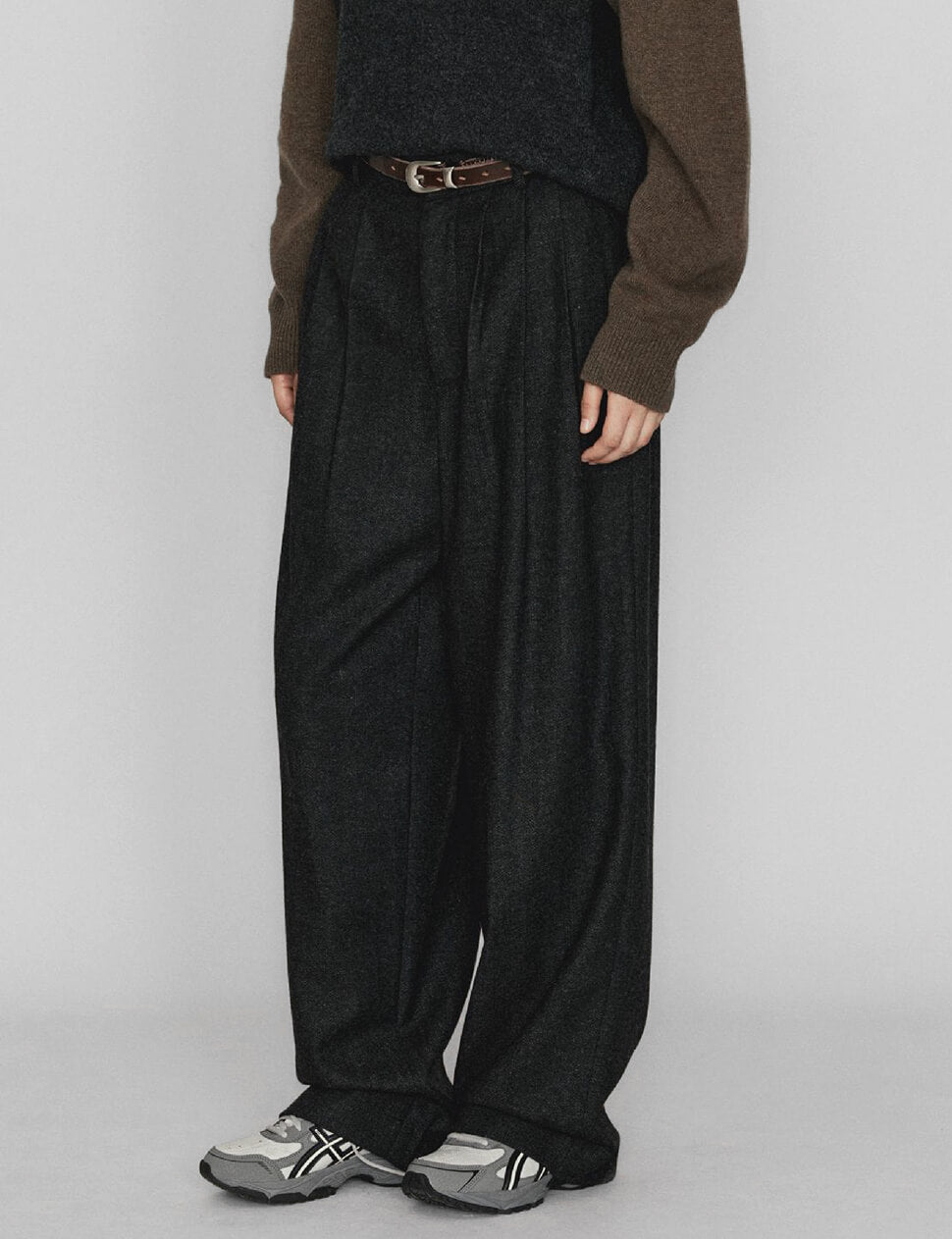 Dark Grey baggy Wool-blend trousers