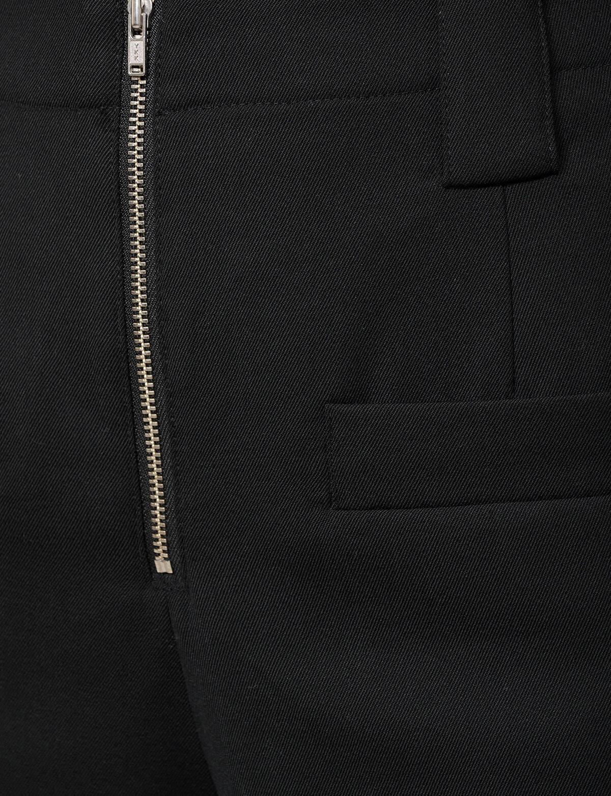 Chic black wig-leg pants with zip center and front pockets.