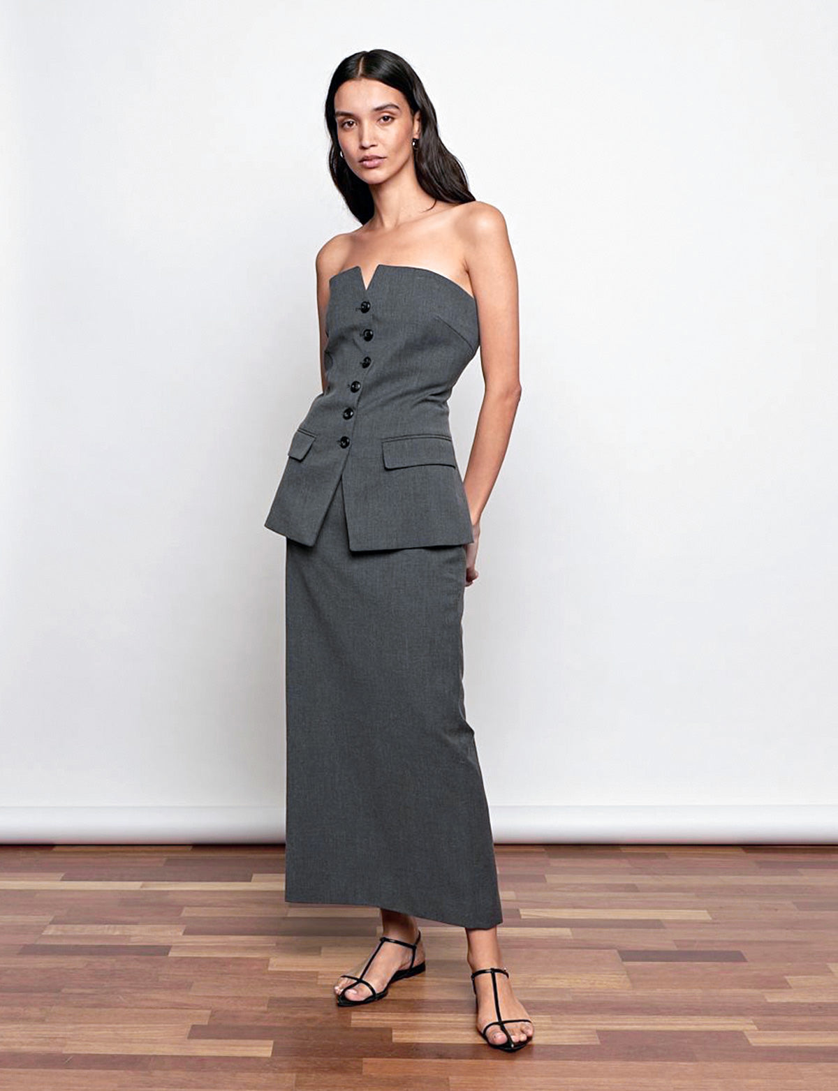 FINAL SALEGrey button strapless top. Styles with matching grey Nia maxi skirt .
