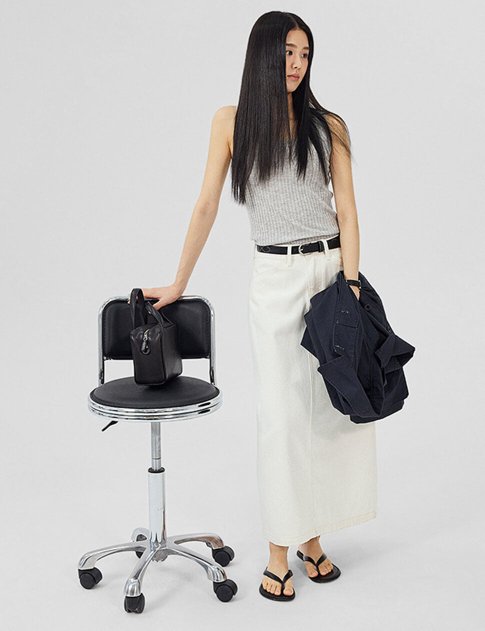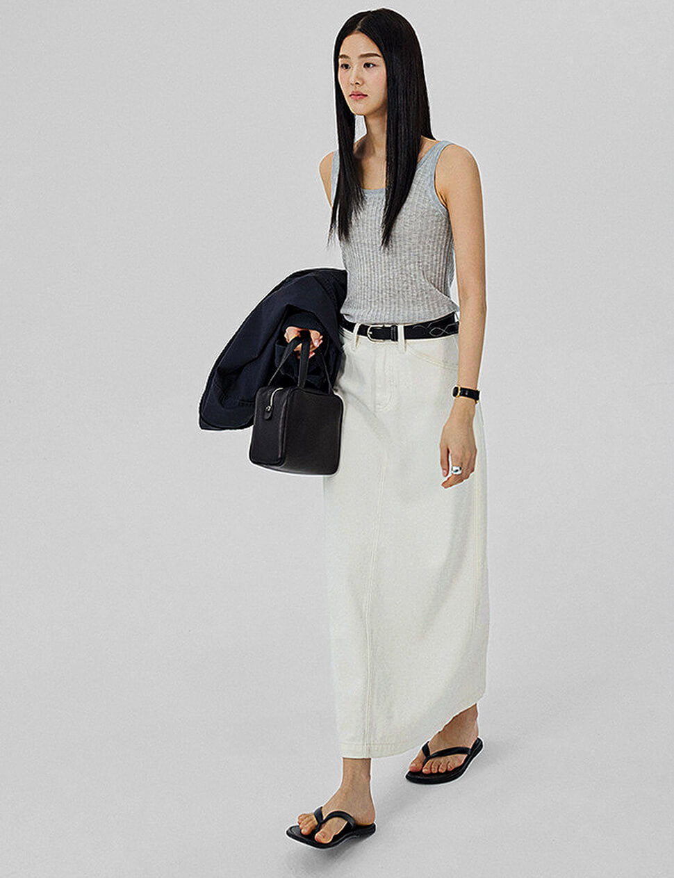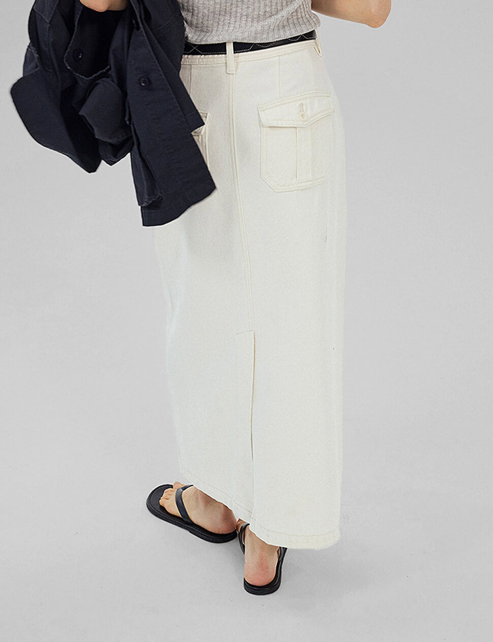 Meet your new off-duty essential. The Beige Cargo Maxi Skirt is cut in a straight silhouette from 100% cotton denim in a warm khaki wash. Utility-inspired cargo pockets at the front and a buttoned patch pocket at the back add practical detail without overworking the look. Pair it with a fitted tee and loafers or a crisp over-shirt and sandals.