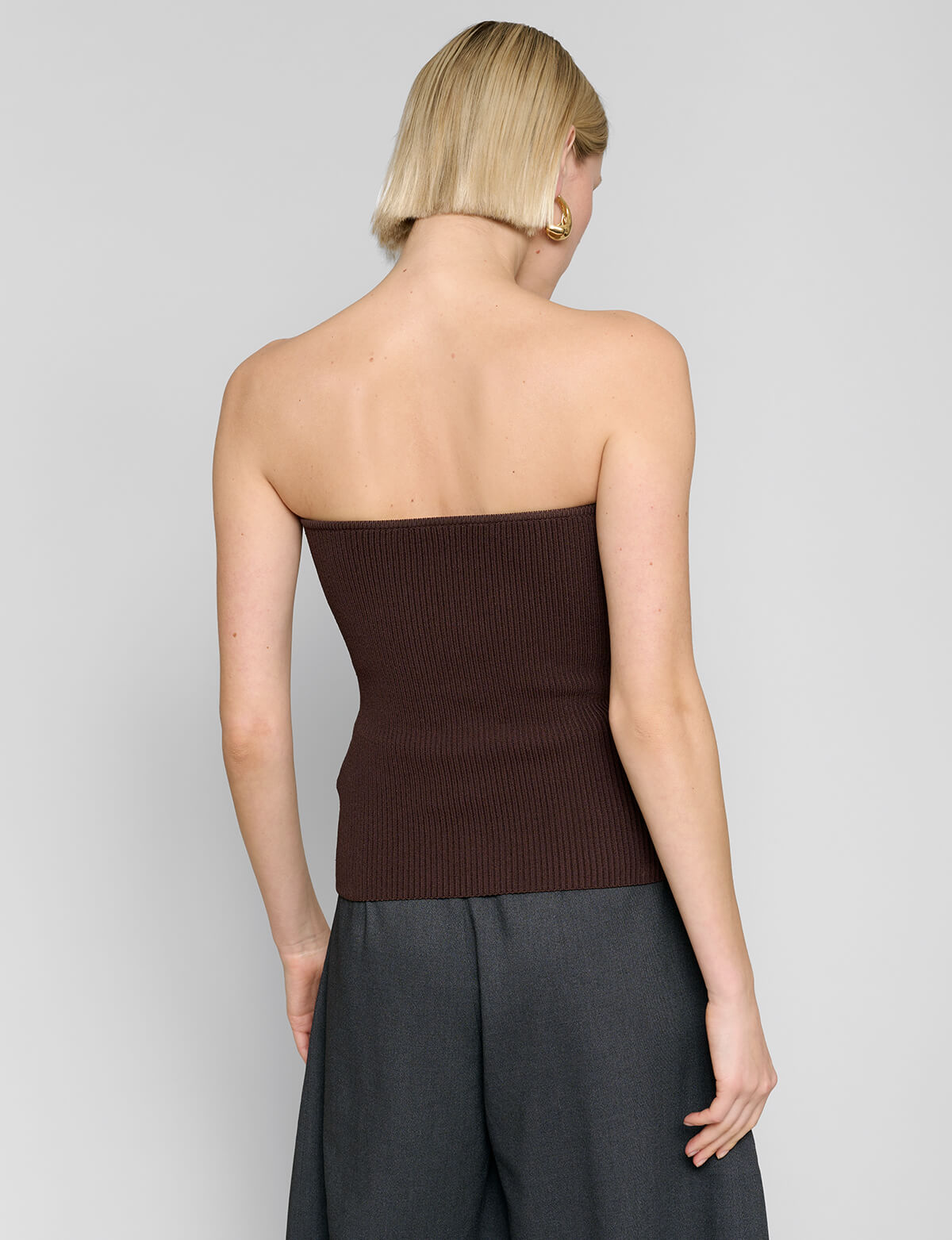 FINAL SALE Structured thick chocolate brown knit strapless bustier top .  Make a statement in this sweetheart neckline knit top.
