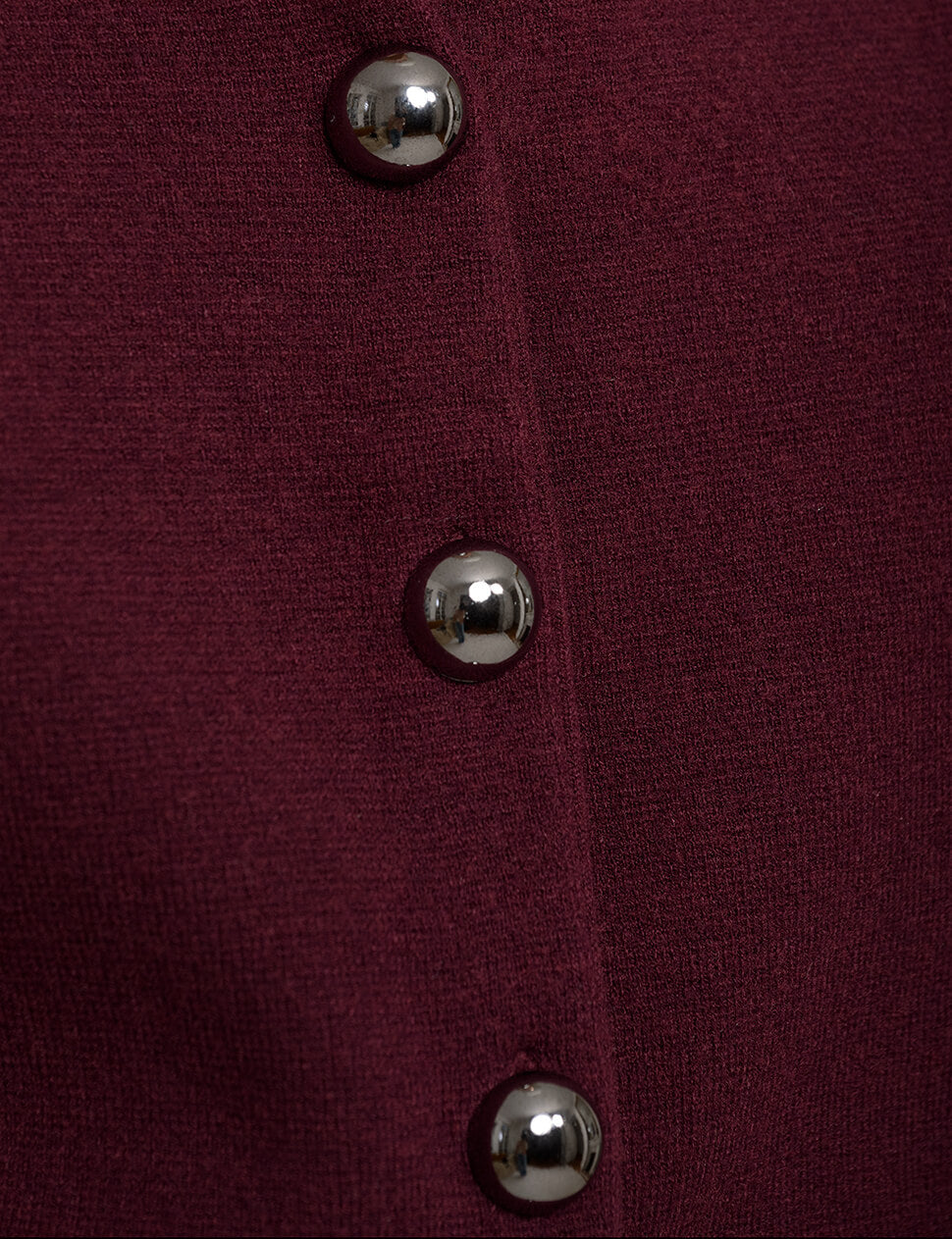Burgundy knit shoulder padded knit vest with large deco matte silver buttons .Brand Sitara Shop