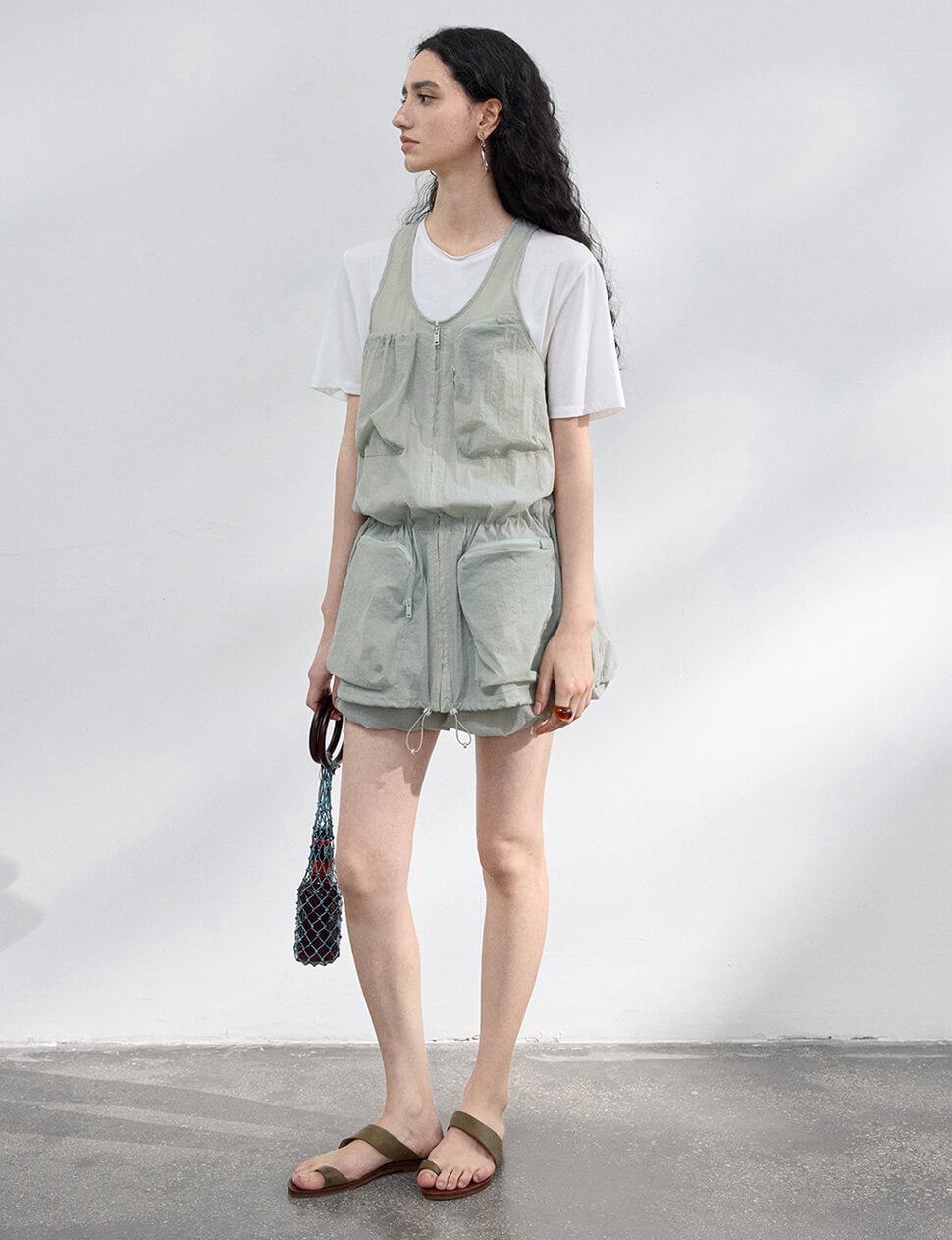 FINAL SALE Pebble Parachute Top with Zip Pouch Pockets