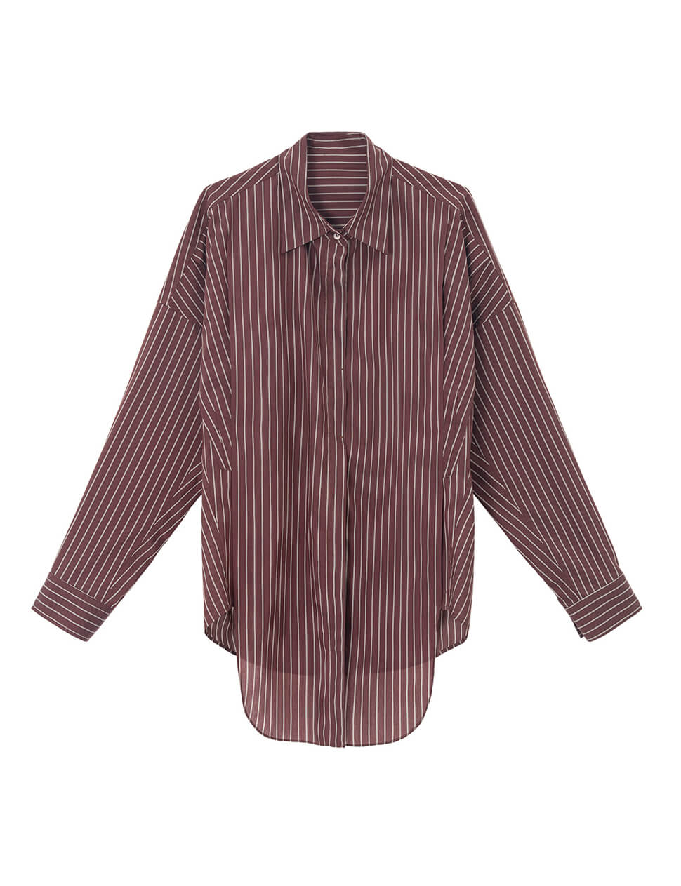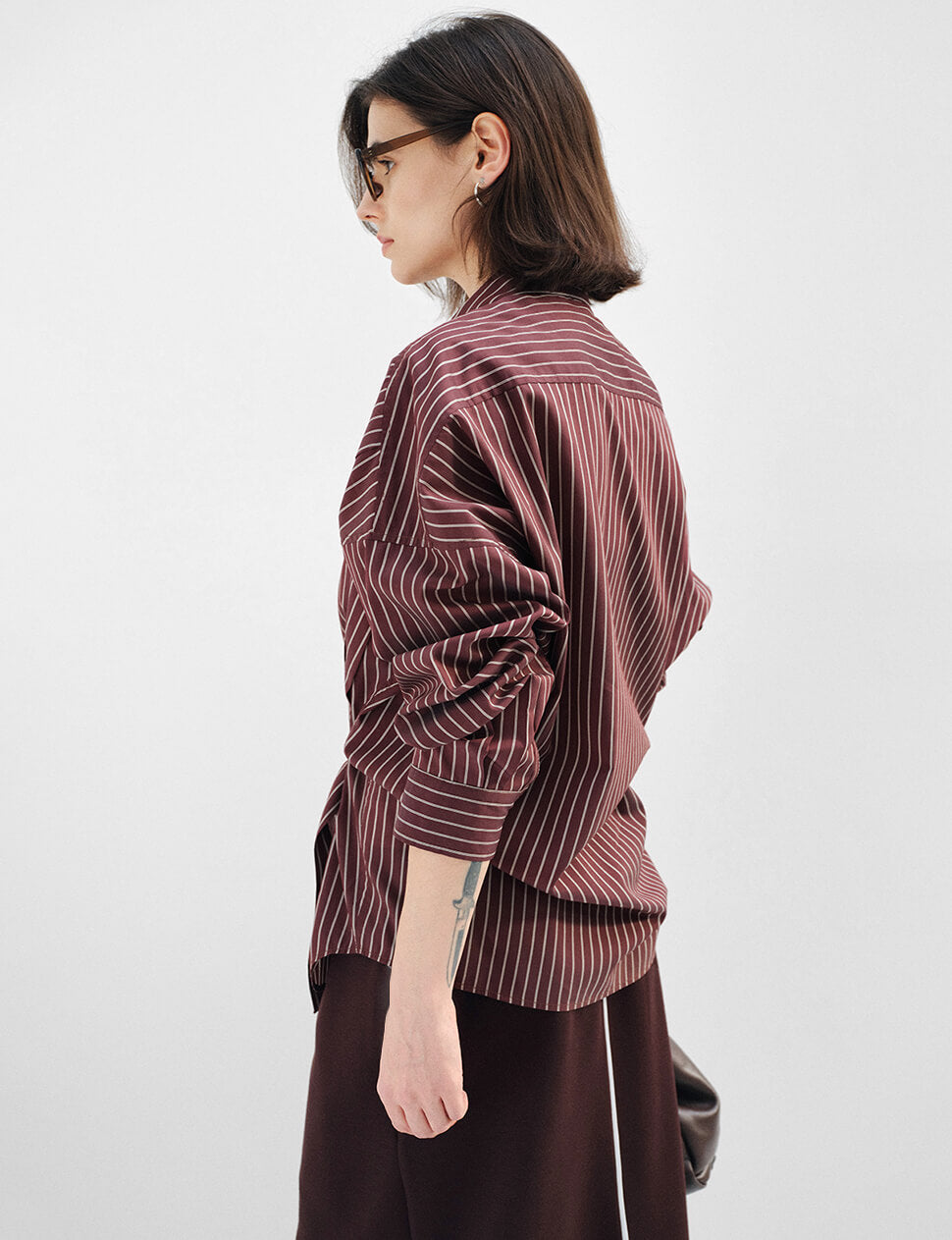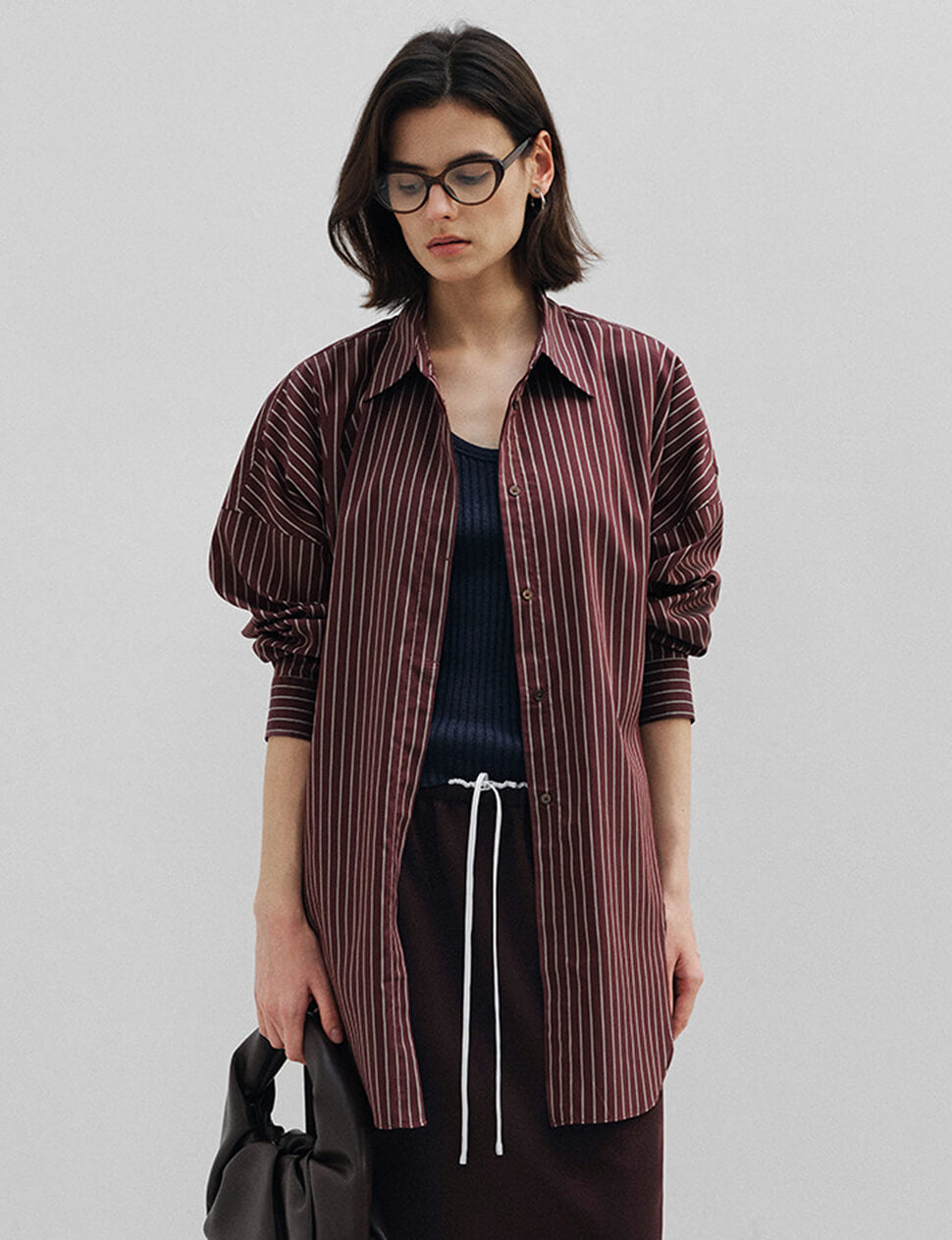 The striped shirt that does two things well. Wear it loose over wide-leg trousers for an effortless longline look, or tie it at the waist and let the volume work differently — structured where it needs to be, relaxed everywhere else. Cut in an oversized silhouette from soft lyocell, it has the kind of drape that photographs like silk but feels like nothing.