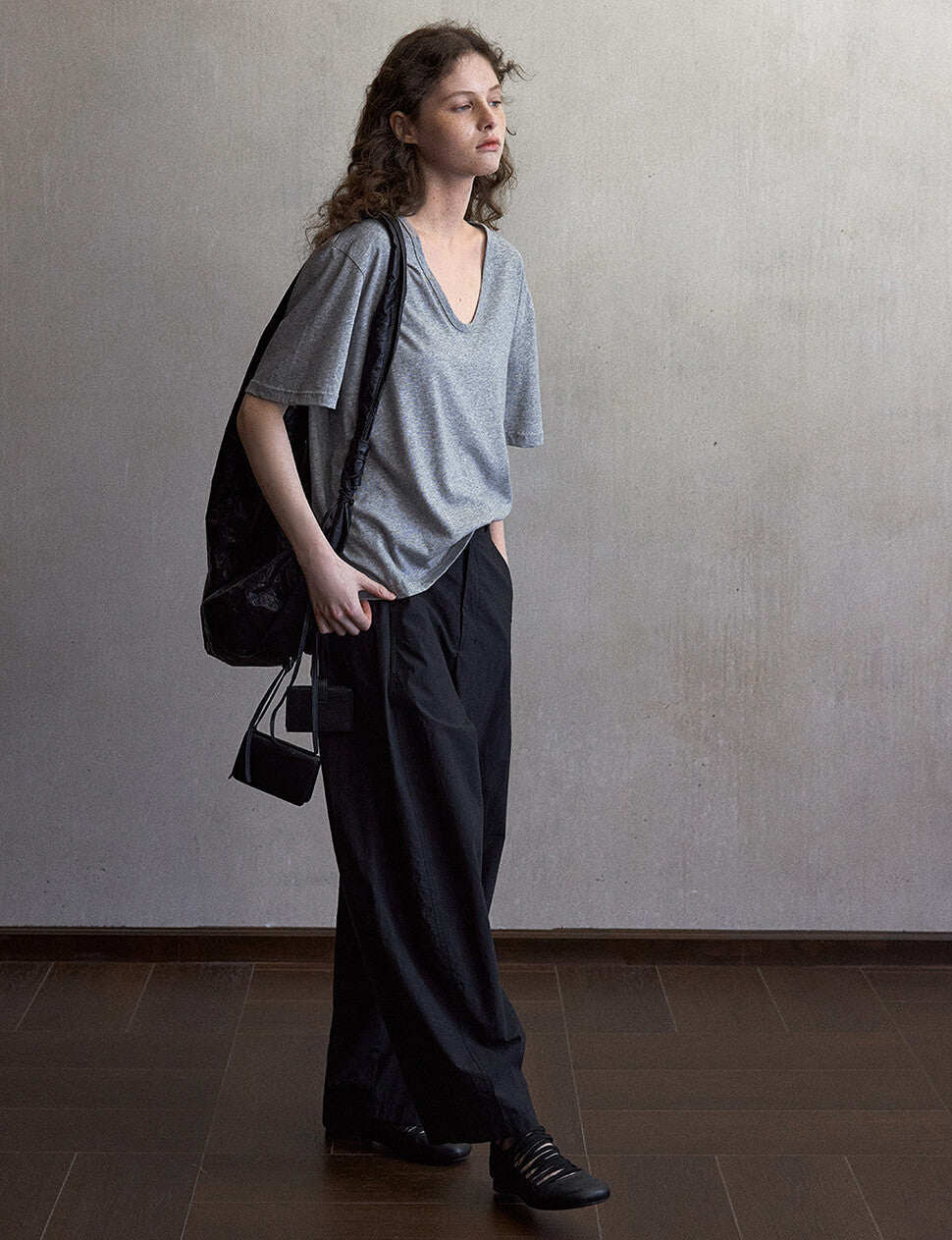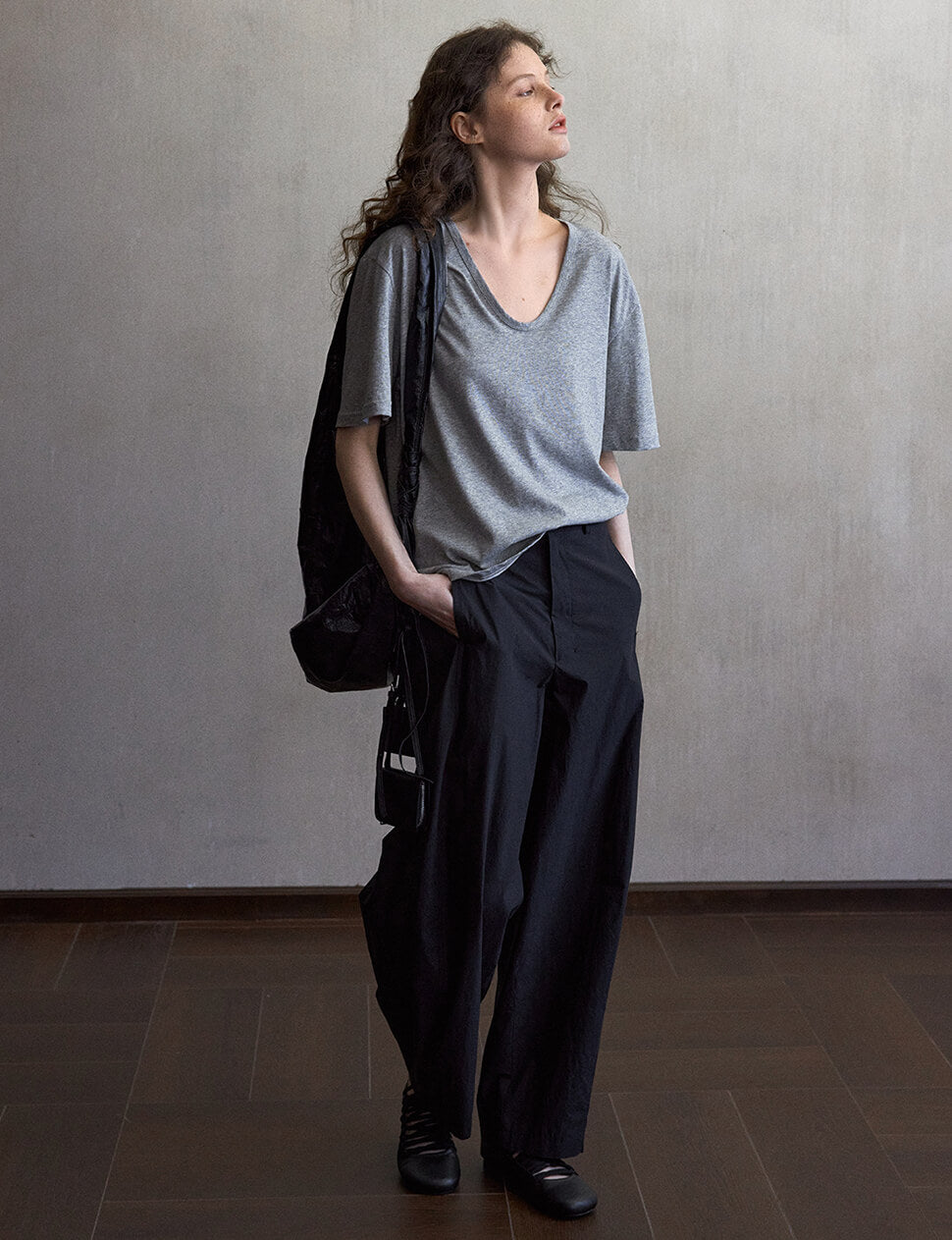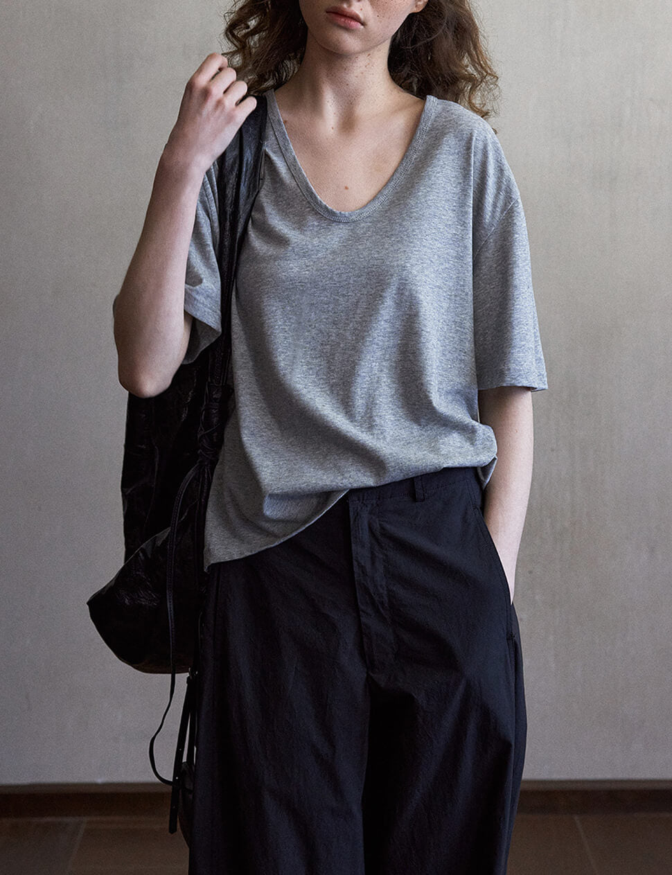 Grey Scoop Neck Relaxed Tee-PREORDER